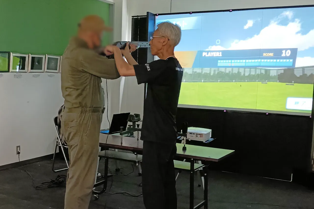 講師から操作方法を学んだ後、VRを用いて射撃体験を行いました。臨場感のある映像の中で射撃の流れを体験でき、参加者からも高い関心が寄せられました。