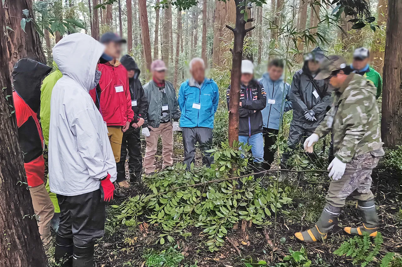 会場周辺のけもの道の特徴や見つけ方について教わり、どのポイントにわなを仕掛けると効果的か、講師の経験に基づくアドバイスを受けながら学びました。