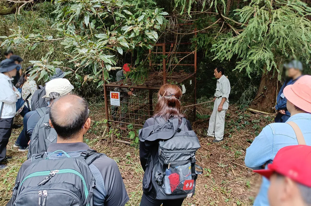 今回の体験会では、狩猟に興味のある参加者を対象に、まず狩猟の意義や役割をわかりやすく学んでいただき、その後、箱わな・くくりわな、網猟の見学を実施しました。
