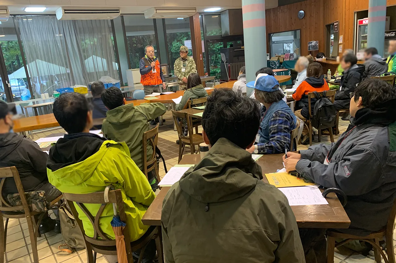 当日はあいにくの雨でしたが、参加した新人ハンターの皆さんからは、「受講者同士の情報交換ができ、講師の話も実践的で大変満足した。」、「初心者の私にも、猟友会の現役ハンターが親切にアドバイスをくれた。」、「実際の狩猟のイメージがつかめた。」、「多様な視点の質疑応答が参考になった。」などの感想をいただき、高い満足度を得ることができました。